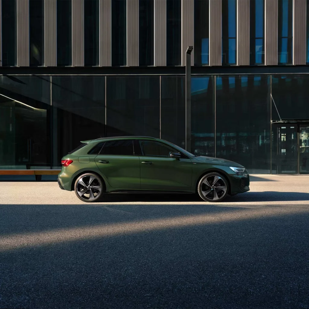 You decide with which paint finish the new Audi A3 Sportback can make the biggest impact, in district green, metallic, for example.