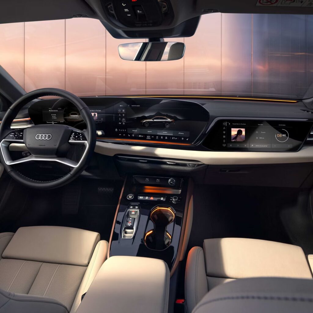 The generous interior exudes puristic aesthetics and, thanks to its fully digitalised instruments and controls, is transformed into a digital stage, framed by high-quality surfaces.