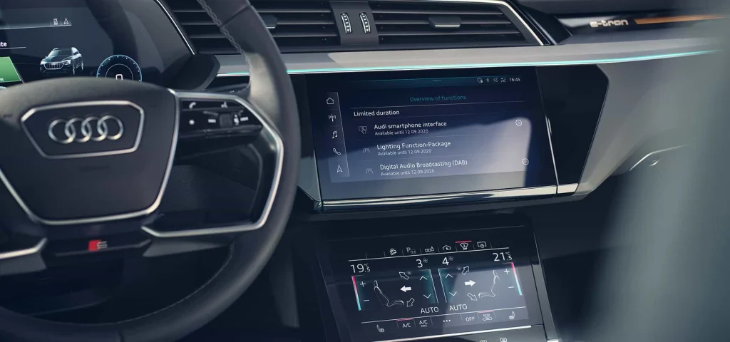 The interior of the Audi e-tron Sportback offers a mix of digital technologies and superb comfort.