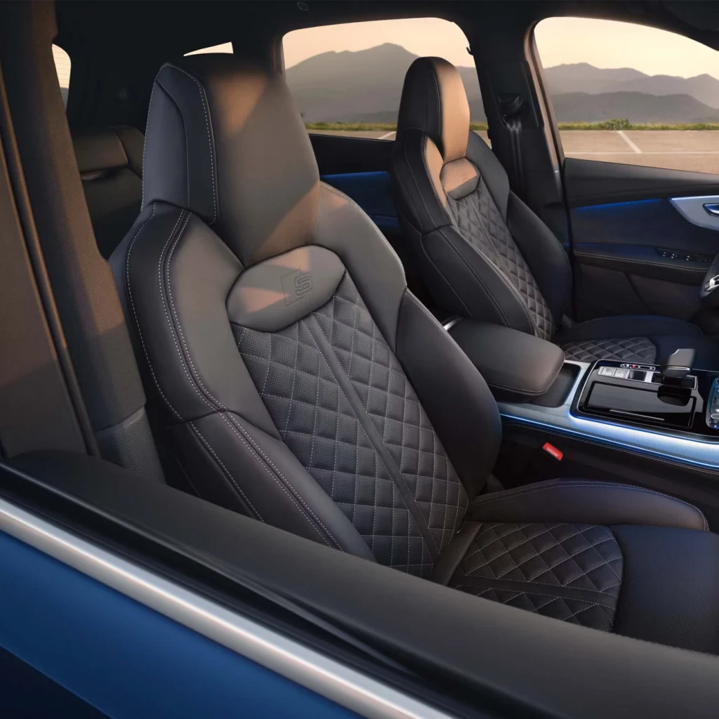 The new Audi Q7 SUV displays its off-road DNA with classic quattro architecture and a powerful shoulder line. The striking Audi Singleframe, Audi rings in flat 2D look and, in particular, the design features of S line all contribute to its sporty appearance.