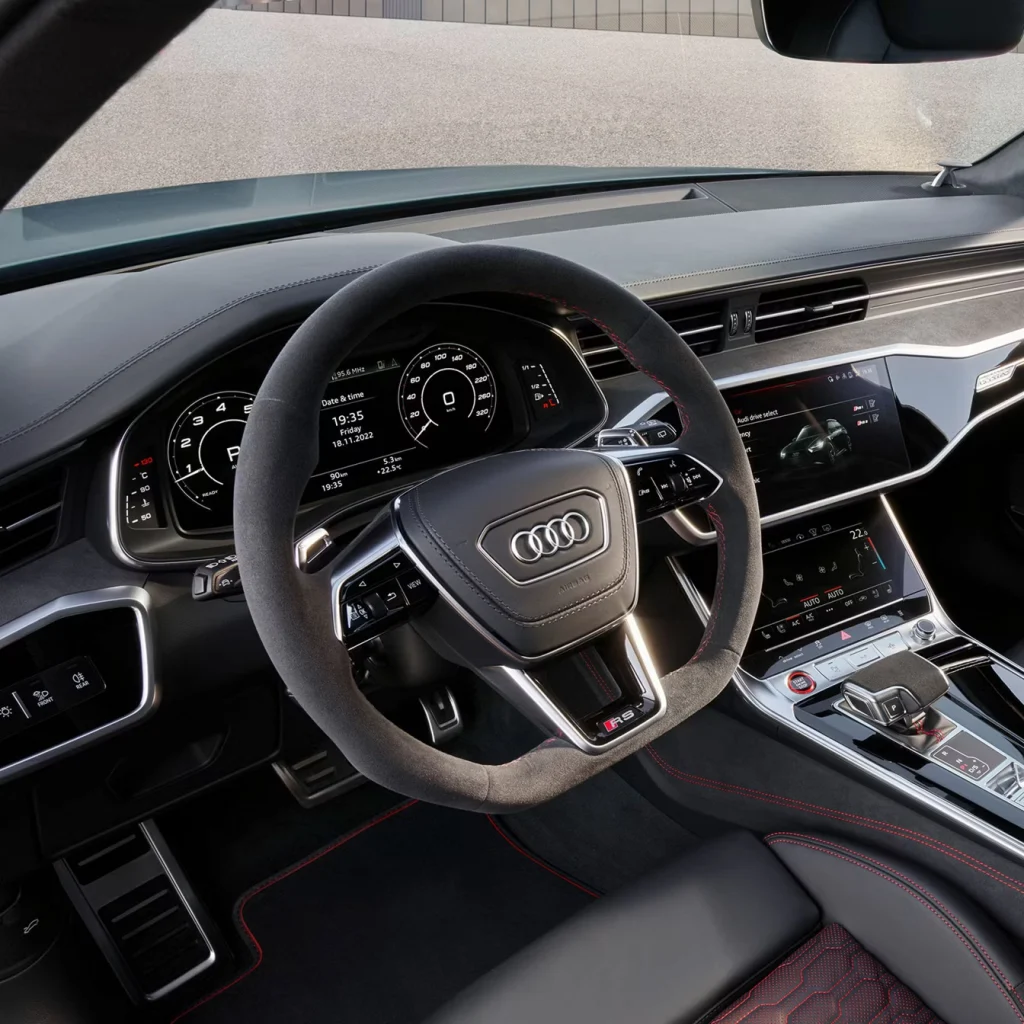 The interior design underlines the progressive character of the Audi RS 6 Avant performance. Be inspired by RS performance-specific design highlights.