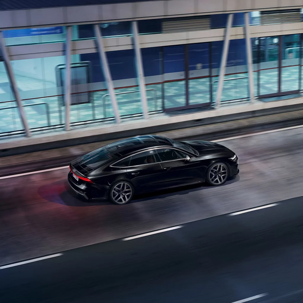 The standard S sport suspension with damper control lowers the S7 Sportback compared to the basic model. Additional S-specific elements underscore its dynamism.