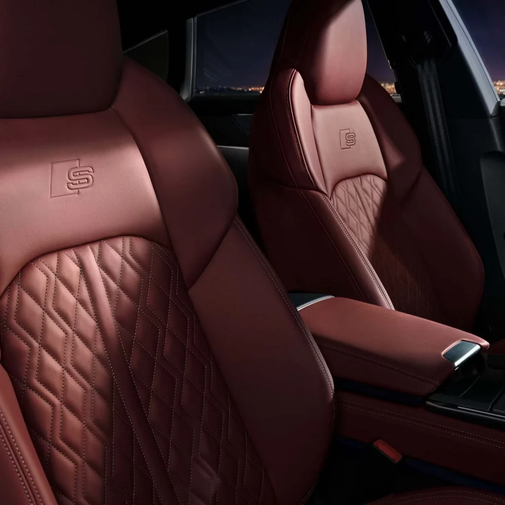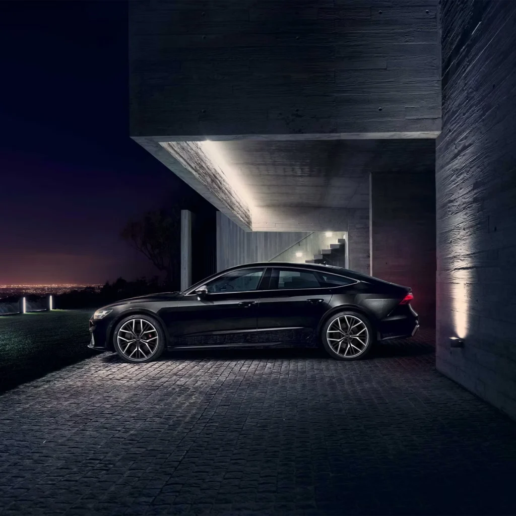 Designed for sportiness from front to back. This is evidenced by the Audi Single frame with radiator grille with a new structure and the newly designed rear diffuser in matt dark chrome. The overall picture is rounded off by exterior mirror housings in aluminum look.