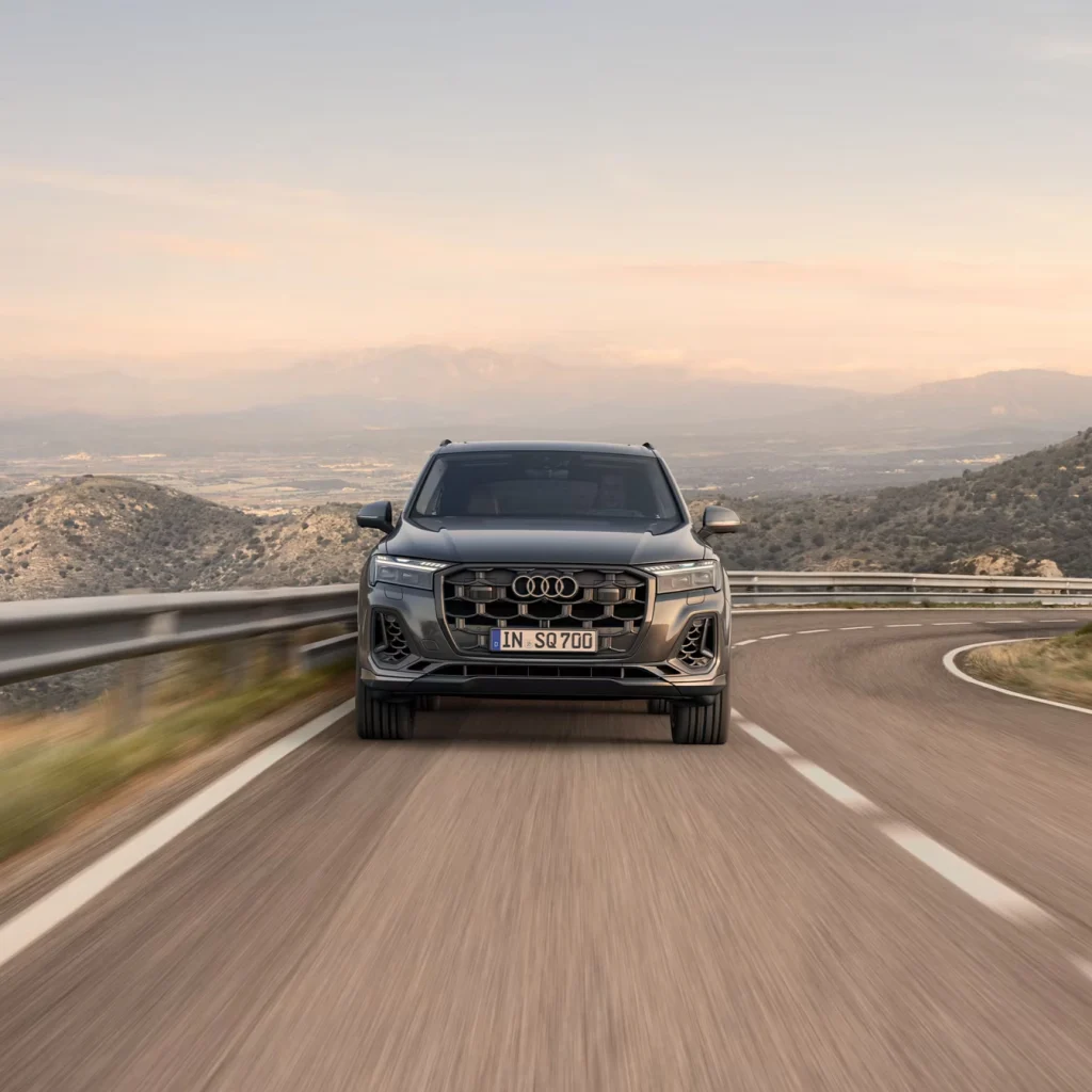 Sporty driving and high comfort are no contradiction on the Audi SQ7 SUV. With innovative suspension technologies, quattro drive and the powerful V8 TFSI engine, it unleashes both thrilling dynamism and outstanding stability on the road.