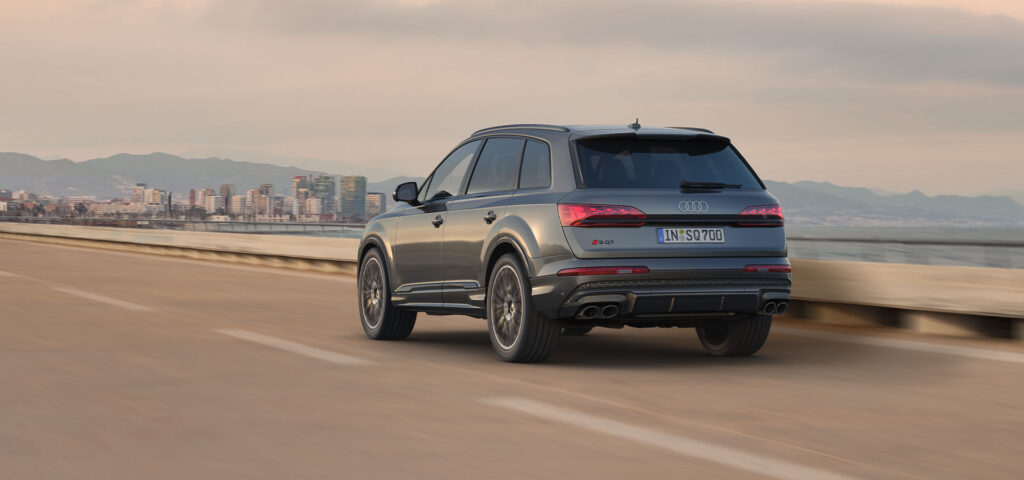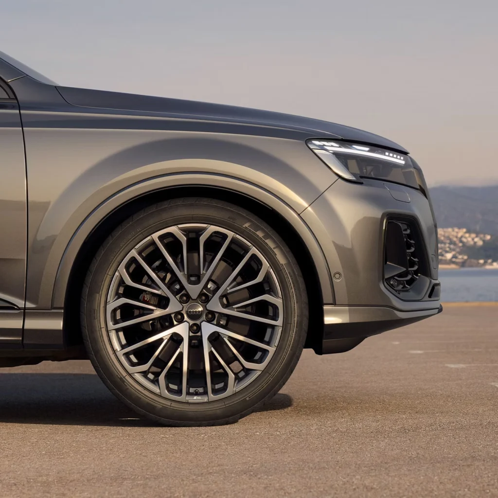 With S-specific attachments in a new design, the Audi SQ7 in Daytona grey, pearl effect exudes pure sportiness.