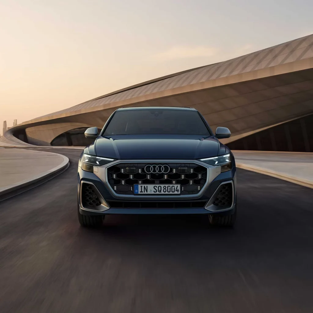 Sporty driving and high comfort are no contradiction on the Audi SQ8 SUV. With innovative suspension technologies, quattro drive and the powerful V8 TFSI engine, it unleashes both thrilling dynamism and outstanding stability on the road.