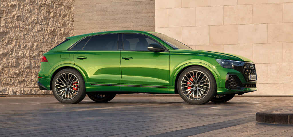 With S-specific attachments in a new design, the Audi SQ8 SUV exudes pure sportiness.